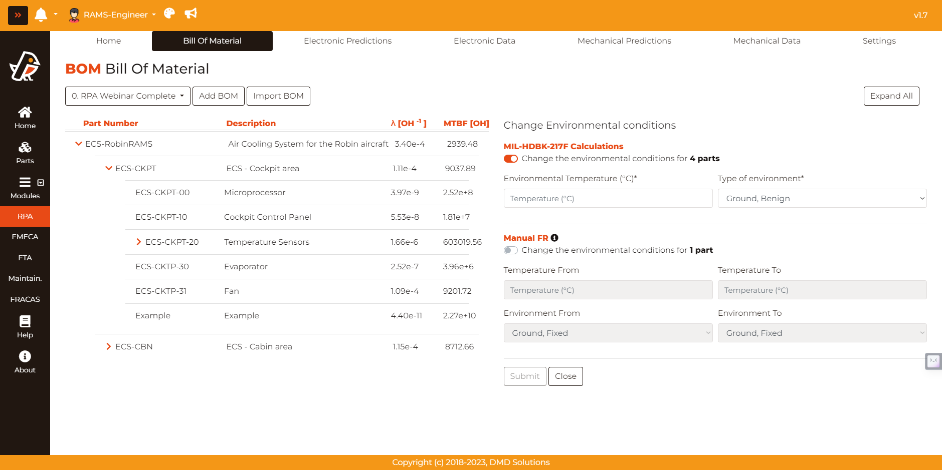 Mechanical Prediction: The failure rate is computed with one of the available standards for Non-Electronic Prediction (see NPRP: Non-electronic Parts Reliability Prediction section)