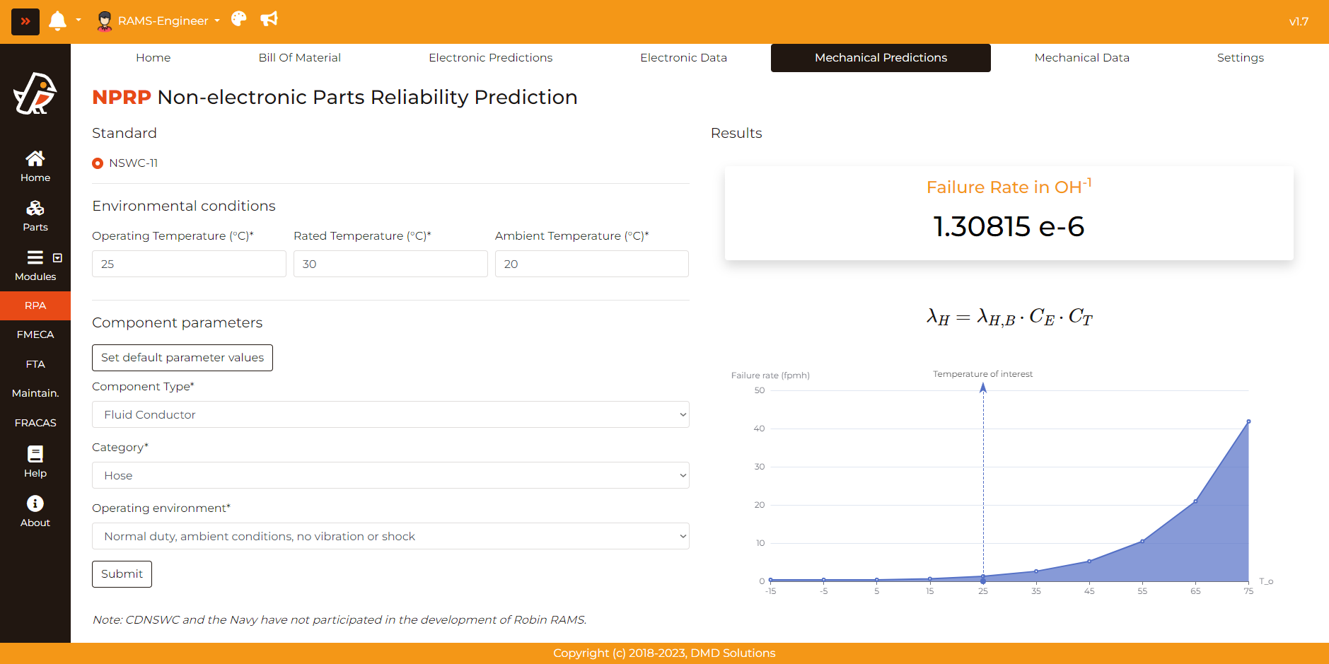 When entering all the necessary parameters, the user can compute the failure rate and the following data is obtained: